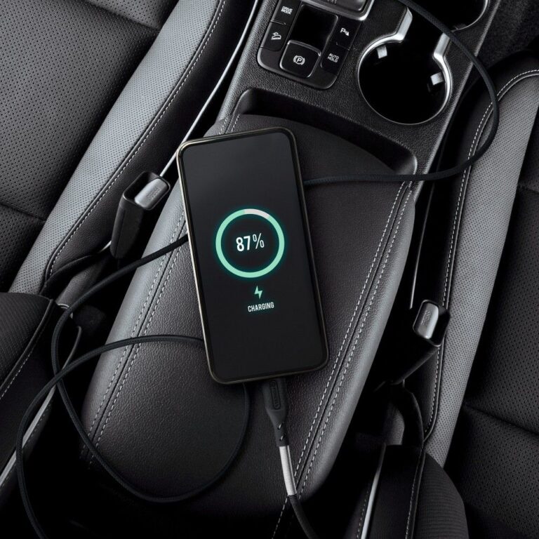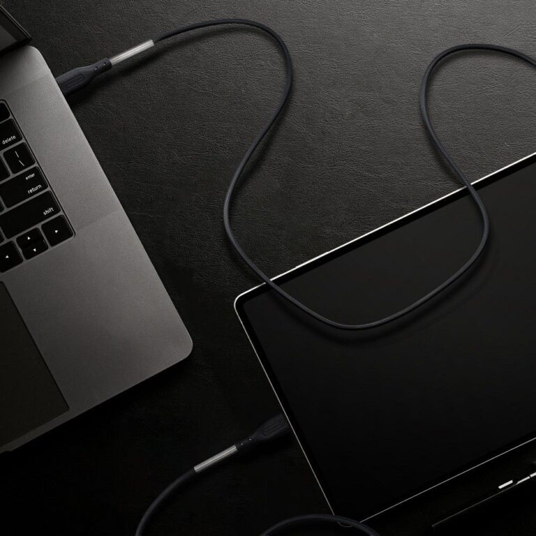 A solid metal casing with carbon fiber details combines design with functionality. The cable is resistant to bending, pressure, and heavy use.