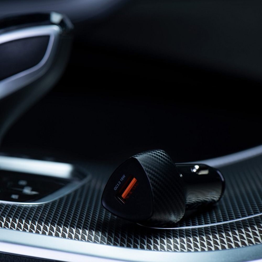 Wykorzystaj ładowarkę samochodową Forcell Carbon CC50-2A36W, aby Twoje urządzenia elektroniczne były zawsze gotowe do użycia! Dwa wejścia USB-A umożliwiają szybkie ładowanie dwóch urządzeń jednocześnie w standardzie Quick Charge™ 3.0 z całkowitą mocą 36 W. Nieużywaną ładowarkę możesz bezpiecznie umieścić w schowku samochodowym, gdzie nie zajmie dużo miejsca.