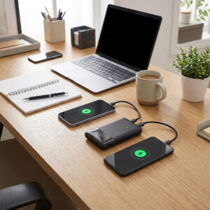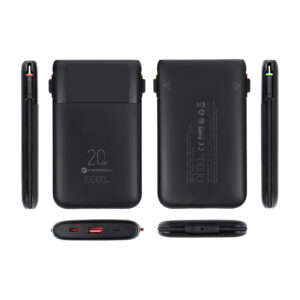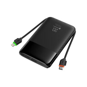 The powerbank comes with built-in USB-C and Lightning® cables, so you don’t need to bring extra accessories. It can charge up to four devices simultaneously, which is excellent for travel and everyday use.